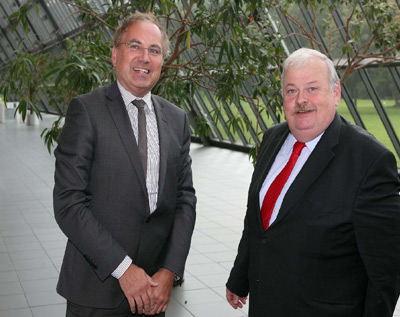 9. September 2011by optivendo Arbeitsminister Guntram Schneider im Gespräch mit Guido Gutowski Schrader, Geschäftsführer der optivendo GmbH